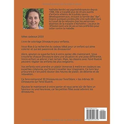Idées cadeaux 2020Livre de coloriage Dinosaure pour enfants.Vous êtes à la recherche du cadeau idéal pour un enfant qui aime colorier et qui est passionné de dinosaures?Alors, ajoutez ce superbe livre à votre panier dès maintenant. Vous trouverez chaque Dinosaure dans une situation et une pose différente. Votre enfant va adorer c'est certain. Mais, les dessins avec fond illustré peuvent régaler les enfants les plus exigeants.Vos enfants vont prendre un plaisir immense à mettre en couleurs ces superbes créatures, qui feront travailler leur imaginaire. Ce livre leur procurera à n'en point douter des heures de plaisir, de détente et de relaxation.Ce livre comprend 30 Dinosaures sur fond blanc + les mêmes 30 Dinosaures sur fond illustré.Ajoutez le maintenant à votre panier et vous serez sûr de faire un heureux ou une heureuse, car les petites filles aussi adorent les dinosaures.