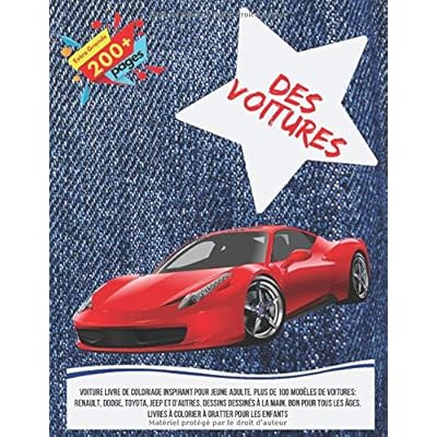 Voiture Livre de coloriage inspirant pour jeune adulte. Plus de 100 modèles de voitures: Renault, Dodge, Toyota, Jeep et d'autres. Dessins dessinés à ... Livres à colorier à gratter pour les enfants Details